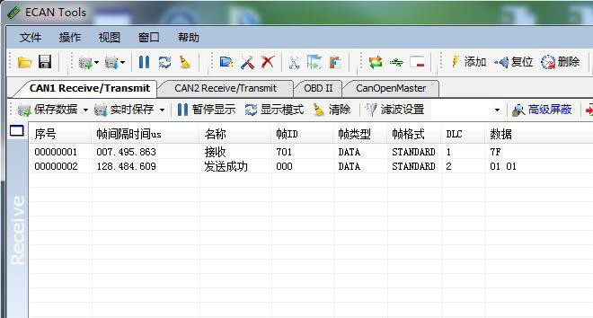 接收到NMT指令之后,GCAN-4032将开始广播PDO数据,并发出帧ID为0x701,帧数据为0x05的心跳指令,说明GCAN-4032已进入操作状态。