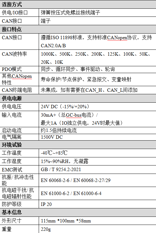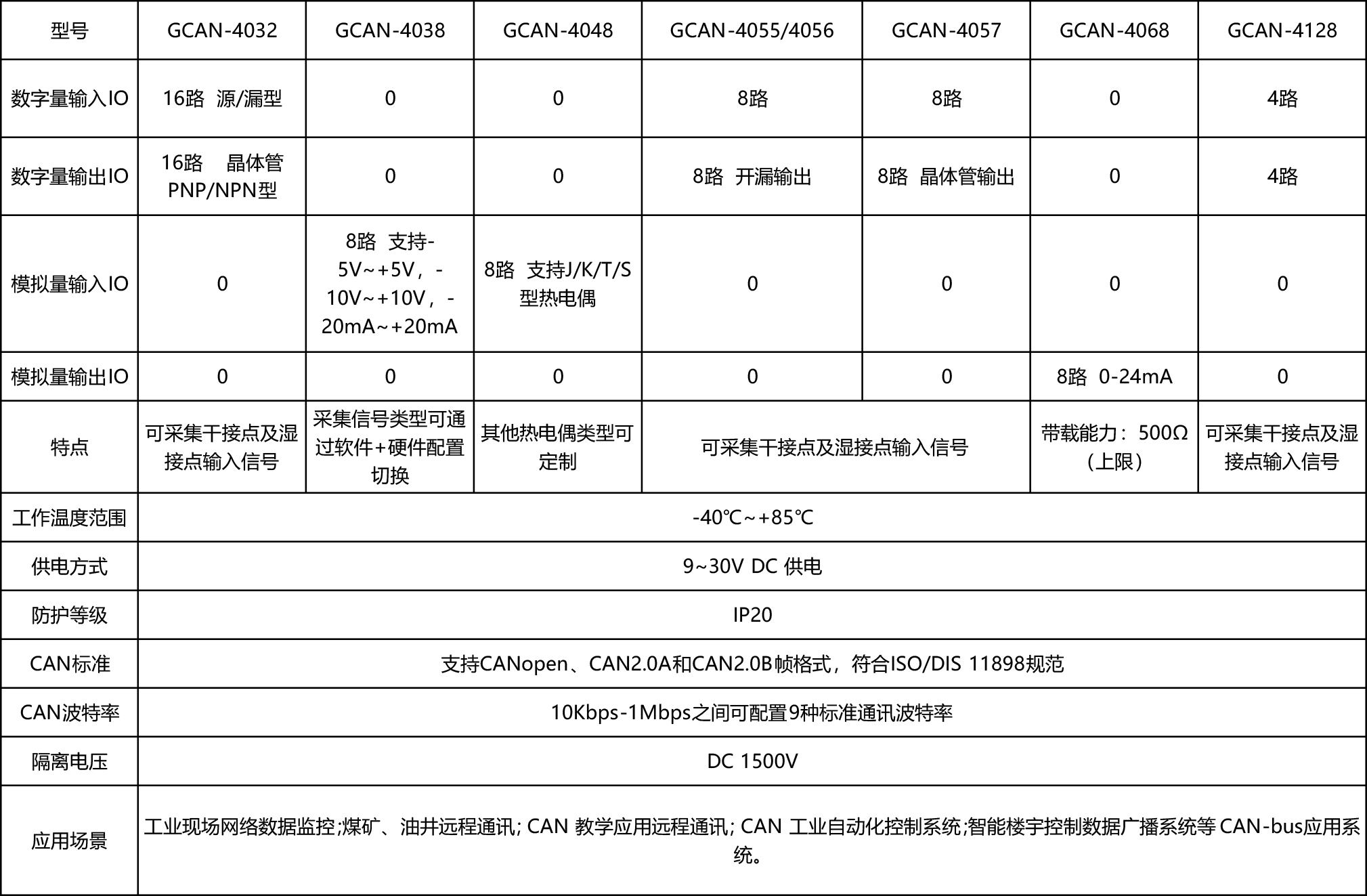 沈阳广成科技GCAN-4032一体式远程IO耦合器设备参数包括: