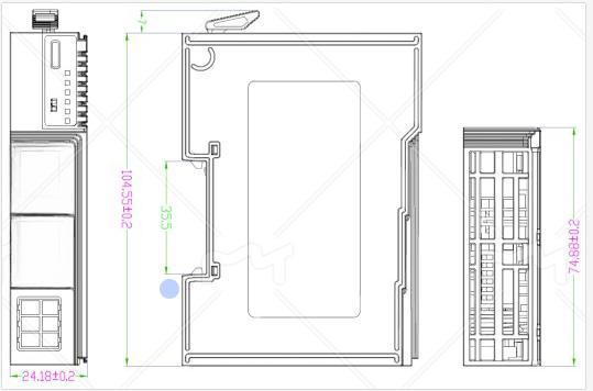 GCAN-IO-8001总线耦合器的尺寸如图所示。