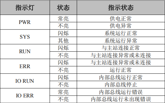 GCAN-IO-8001总线耦合器具有一组状态指示灯,用以指示电源、系统、总线等的状态。