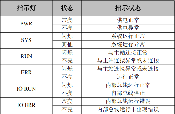 GCAN-IO-8101总线耦合器模块指示灯状态