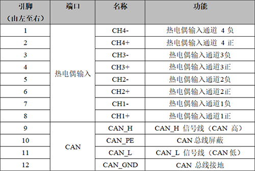 (11)热电偶温度采集接口、CANopen接口使用端子接口;