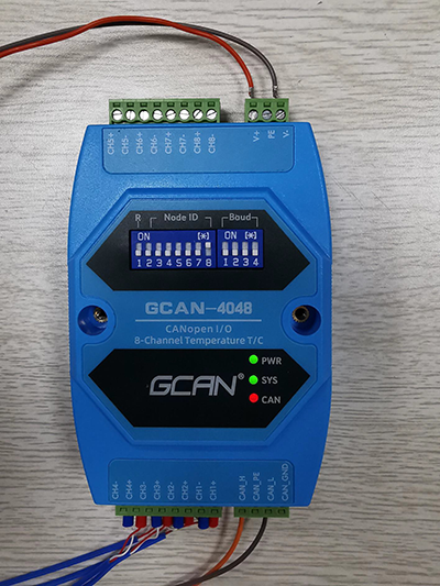 沈阳广成科技GCAN-4048模块是集成1路标准CANopen接口、8路热电偶输入的工业级CANopen模拟量采集模块。采用GCAN-4048模块,用户可同时采集8路信号,实现远程模拟量采集设备和CANopen网络之间的连接,构成CANopen网络中模拟量信号采集的控制节点。GCAN-4048模块目前支持J型、K型、T型、S型热电偶,8路可同时自由配置热电偶型号,倍数和偏移量均可自由配置。GCAN-4048模块是模拟量信号采集的关键性工具,默认上电后自动接收数据,同时该模块具有体积小巧、接线便捷等特点。GCAN-4048模块的总线接口集成隔离保护模块,使其避免由于瞬间的过压过流而对模块造成损坏。采用DIN导轨的固定方式,可使其更容易集成到各种控制柜中。