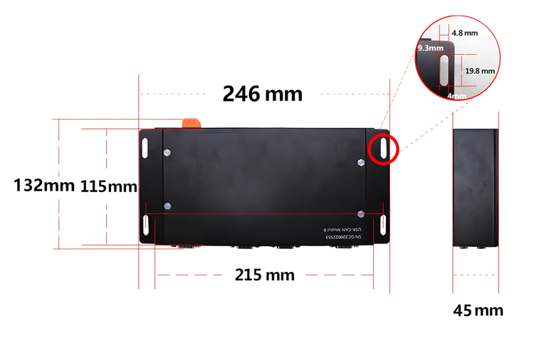 设备外形尺寸:(长)246mm*(宽)132mm*(高)45mm,其示意图如图2.1所示。