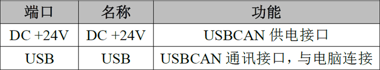 USBCAN-Modul 8 接口卡使用DC+24V 直流电源供电,USB 接口作为通讯接口,因此在使用时需将DC+24V 和USB 一起接入。