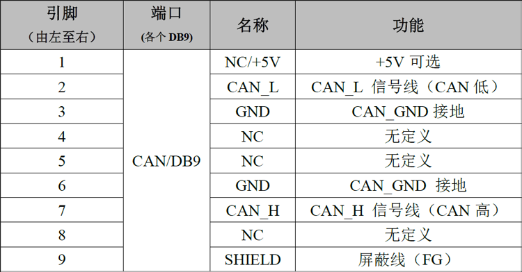 表2.2 USBCAN-Modul 8 接口卡的CAN-Bus 信号分配