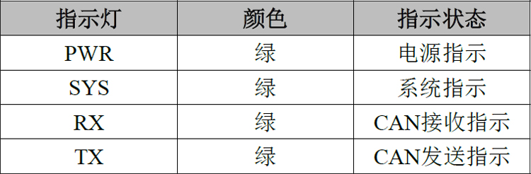表3.2 USBCAN-I Pro+接口卡指示灯