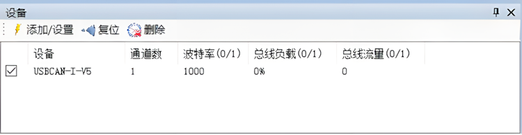 ②“打开设备”按钮:点击该按钮,可调取USBCAN设备。若显示“USB设备打开错误!”请检查①中选择的设备是否正确,设备管理器中的驱动是否安装正确。