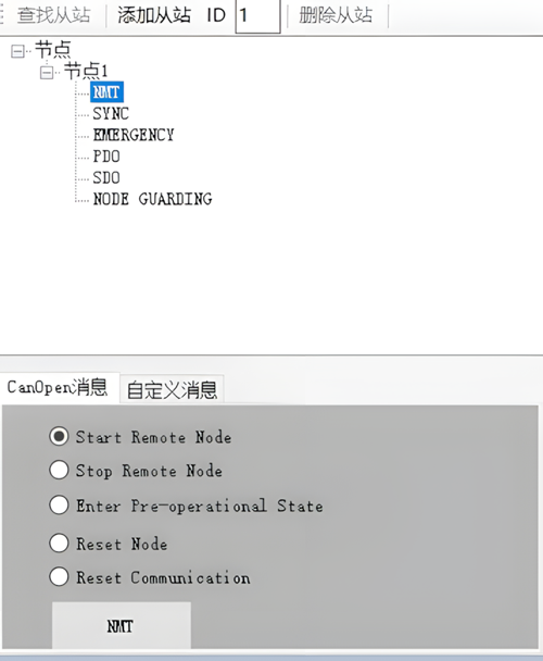现阶段仅开放“设置速度模式”供您对伺服电机设备进行简单控制。连接伺服电机设备的CAN总线后,依次点击“查找从站”—“Start”—“设置速度模式”—“RUN”,即可将伺服电机驱动。
