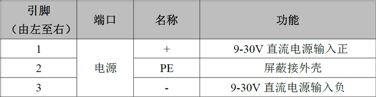 GCAN-401模块CAN-bus接口由1个3Pin插拔式接线端子(绿色)引出,可以用于连接1个CAN-bus网络或者CAN-bus接口的设备。其电源接口定义如表2.2所示。