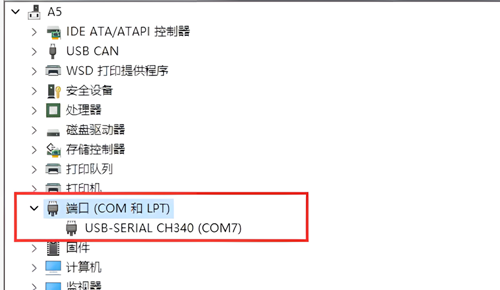用户自行与配置软件连接需要使用USB线接到图3.6中的USB接口上,进入设备管理器找到串口号。如图3.1所示。