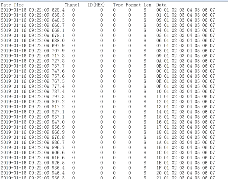 图4.5 CANRecToolsV1.5软件转化后数据格式