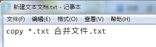 以合并文本文件(.txt)为例,在想要合并文件的文件夹中新建一个文本文档,文档中输入以下内容: