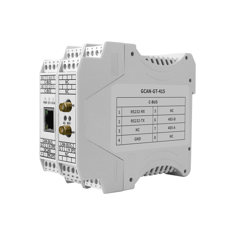 沈阳广成科技GCAN-GT-415是一种可编程的总线网关/转换器。该设备集成了2路CAN总线接口、1路以太网总线接口、1路RS485总线接口、1路RS232总线接口,1路4G接口、1路WIFI接口。在实际使用前,用户需要通过OpenPCS软件对该设备编写应用程序,以此来实现不同总线接口之间数据的互相转换。GCAN-GT-415模块支持多种标准通信协议,如CANopen、SAE J1939、ModbusTCP、Modbus RTU等,用户在实际使用时可直接选择对应协议的功能块加载即可使用,功能块的加入使得用户编程工作变得简单,用户只需了解基本的PLC编程指令和对应总线对应协议的特点和参数即可完成编程工作。