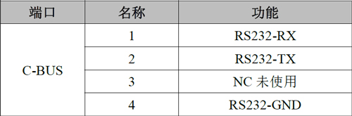 GCAN-GT-415模块232串行接口由1个4 Pin接线端子引出,其接口定义如表所示。