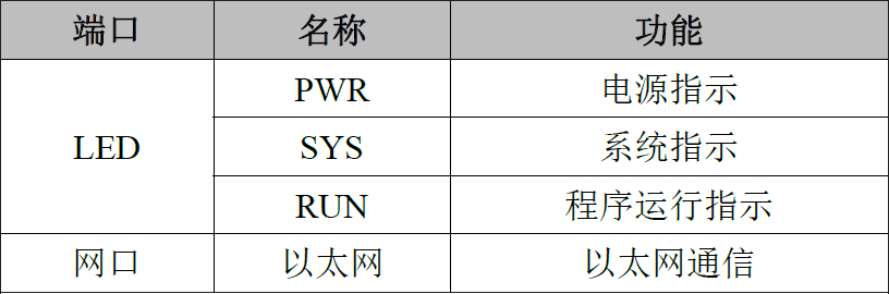 GCAN-GT-415左侧网口及附近3个灯,其接口定义如表所示。