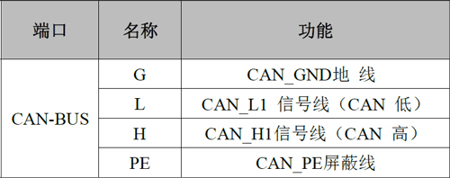 GCAN-GT-419模块CAN-bus接口由1个4 Pin接线端子引出,有2个独立的CAN接口,其接口定义如表所示。