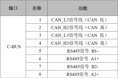 GCAN-GT-419模块C-bus接口由2个4 Pin接线端子引出,有2个独立的CAN接口,和2个独立的485接口。其接口定义如表所示。