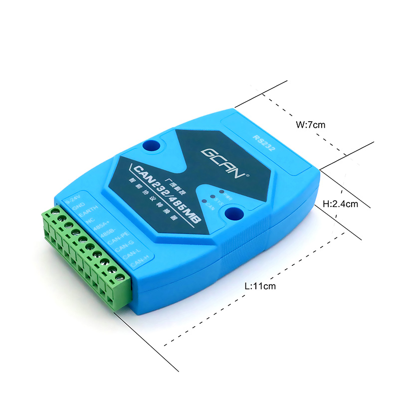 GCAN-201模块在正常工作时,处于实时对CAN总线和RS-232/RS-485总线进行监听的状态,一旦检测到某一侧总线上有数据接收到,立即对其进行解析,并装入各自的缓冲区,然后按设定的工作方式处理并转换发送到另一侧的总线,实现数据格式的转换。GCAN-201模块是工业总线改造,多种总线设备互连的关键性工具,同时该模块具有体积小巧、即插即用等特点,也是便携式系统用户的最佳选择。GCAN-201模块的各种总线接口均集成隔离保护模块,使其避免由于瞬间的过压过流而对模块造成损坏。采用DIN导轨的固定方式,可使其更容易集成到各种控制柜中。