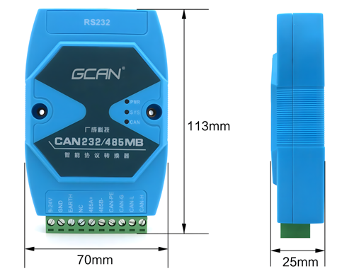 一、功能概述沈阳广成科技GCAN-201模块(CAN232/485MB)是集成1路标准CAN总线接口、1路标准串行接口(RS-232/RS-485)的工业级CAN总线与串行总线通讯连接器(网桥)。采用GCAN-201模块,用户可以将原本使用RS-232/RS-485总线进行通讯的设备,在不需改变原有硬件结构的前提下使其获得CAN总线通讯接口,实现RS-232/RS-485通信设备和CAN总线网络之间的连接,构成现场总线实验室、工业控制、智能小区、汽车电子网络等CAN总线网络领域中数据处理、数据采集的CAN总线网络控制节点。