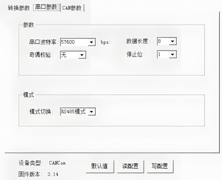 请注意:GCAN-201设备只能通过RS232接口进行配置,不能通过RS485接口进行配置。