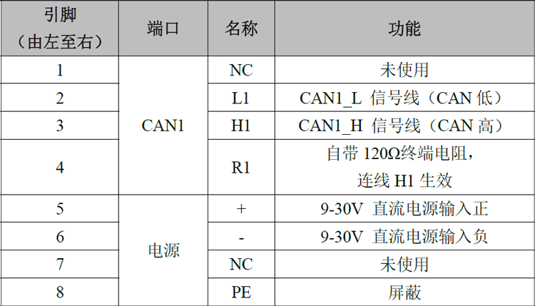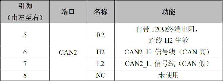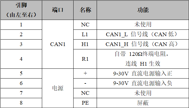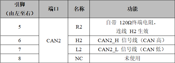 表2.2 GCAN-212-B电源及CAN1接口定义