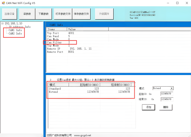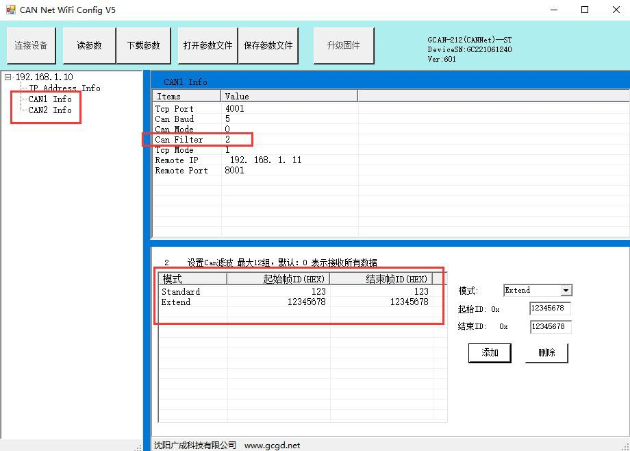 图4.6广成科技GCAN-212-B配置软件设置滤波