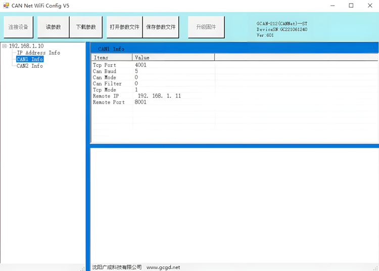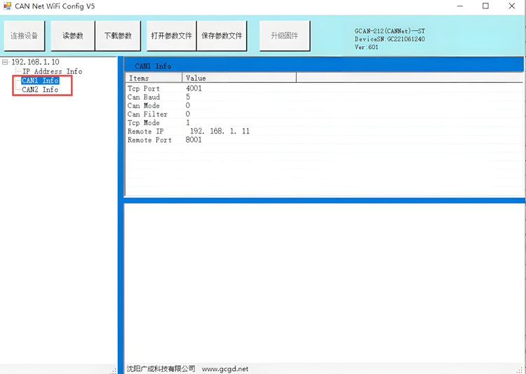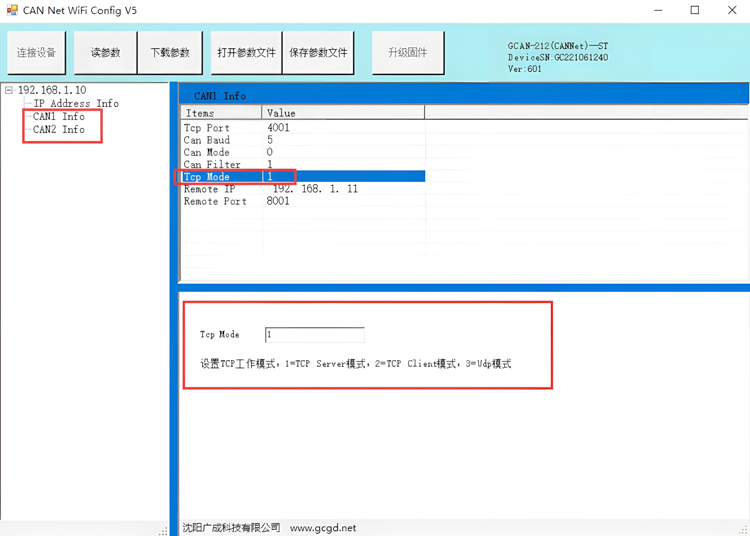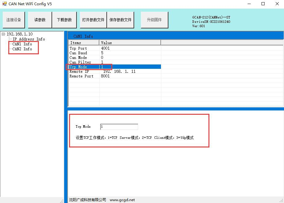 “TCP Port”——设置GCAN-212B设备对应CAN通道的通信端口;