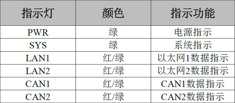 当CAN总线上有数据收发时,相应的CAN1或CAN2绿色指示灯会有闪烁。当CAN总线产生通信故障,则红色指示灯会点亮。
