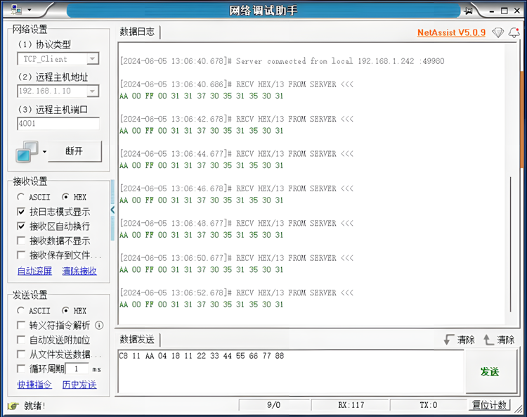 数据4:00;数据5:01=TCP Server,02=TCP Client,03=UDP。