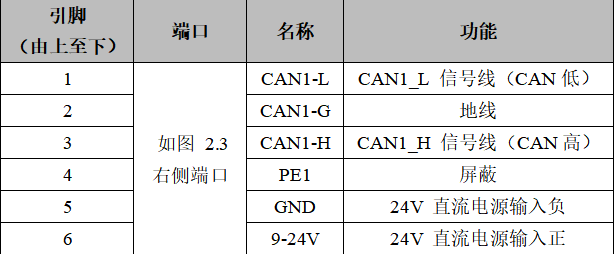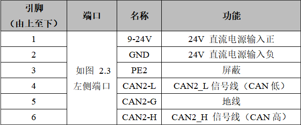 表2.1 GCAN-216模块的左侧接口定义