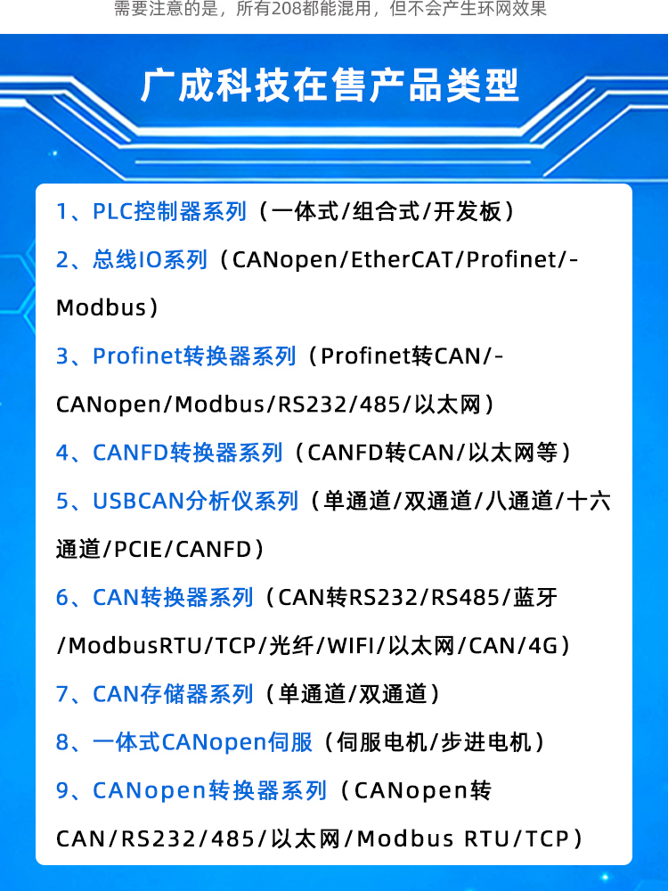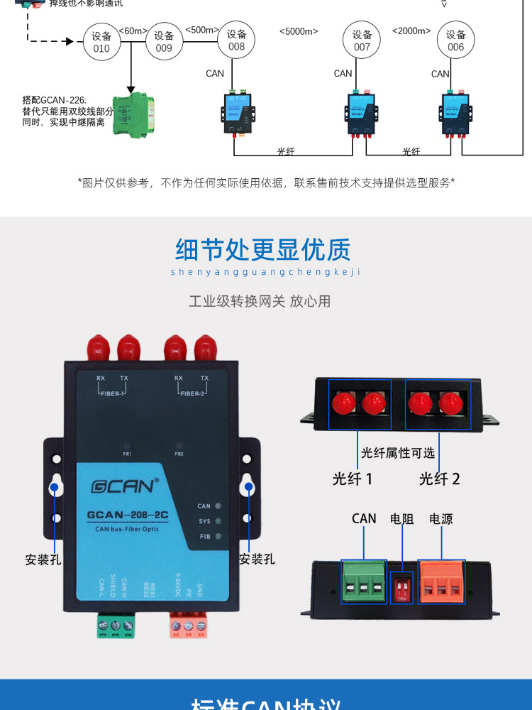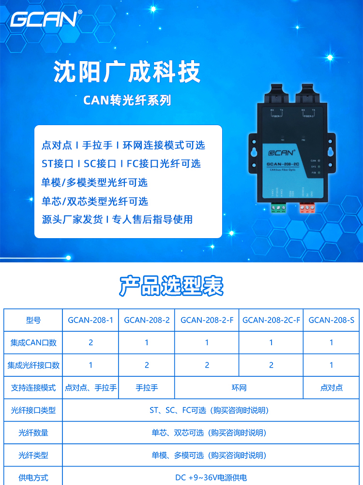 广成科技CAN转光纤转换器 品牌: GCAN广成科技 型号: GCAN-208/208S 应用: 高速铁路、地铁、煤矿、医疗、汽车电子、楼宇安防、电梯控制等场合项目 产品简述 功能特点 规格参数 视频资料 资料下载 联系我们 具体型号详情链接: (1)GCAN-208 (2)GCAN-208S (3)GCAN-208-2C 1、208-1接线 2、208-1拨码配置波特率 3、208-1自动识别波特率 4、208-2接线 5、208-2拨码配置 6、208-2自动识别波特率 GCAN-208光纤转CAN网关用户手册 GCAN-208-S光纤转CAN网关用户手册 GCAN-208-2C光纤转CAN网关用户手册