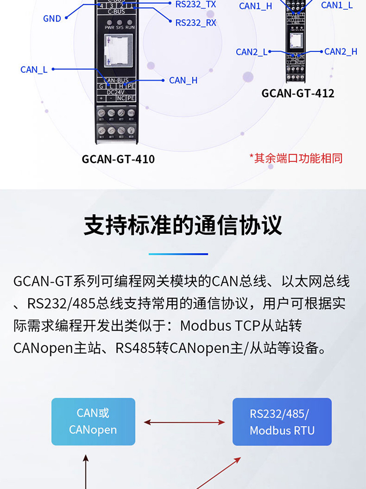 GCAN-GT-41X系列CANopen可编程网关转换器