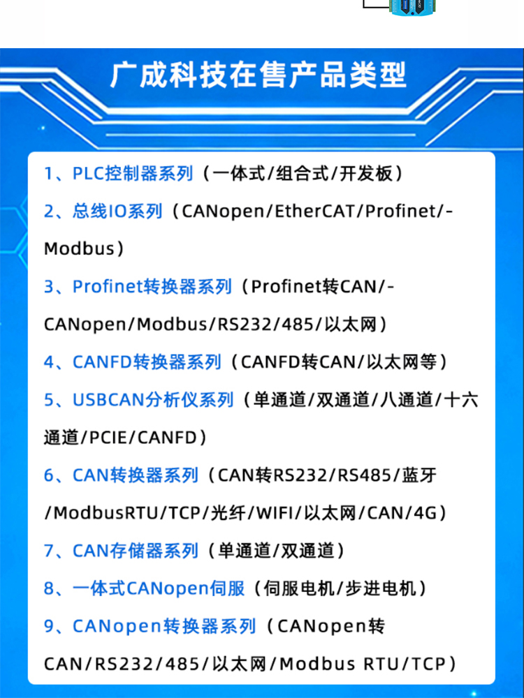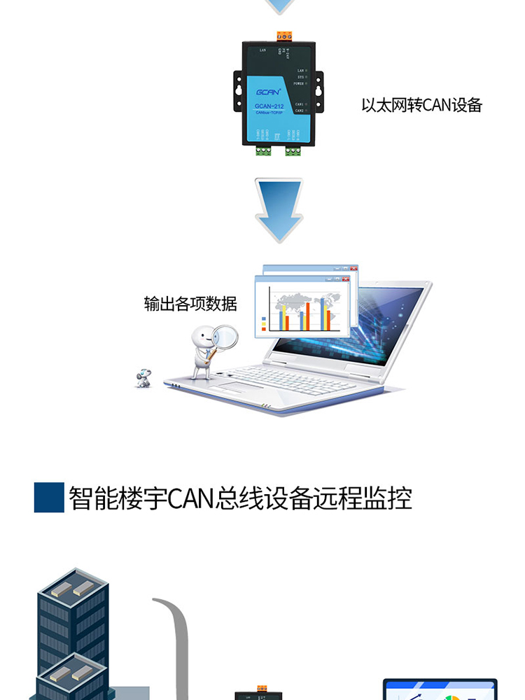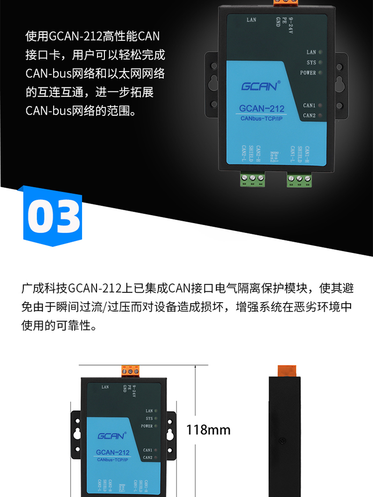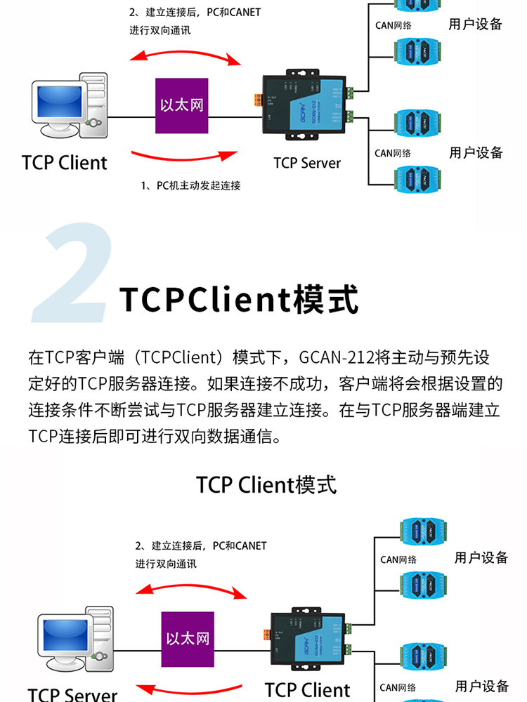 广成科技CAN转以太网设备系列 品牌: GCAN广成科技 型号: GCAN-212/212B/212W 应用: CAN-bus网络诊断与测试、工业以太网连接至CAN网络、电力通讯网络、工业控制设备、高速、大数据量通讯 产品简述 功能特点 规格参数 视频资料 资料下载 联系我们 沈阳广成科技CAN转以太网设备详情链接: (1)GCAN-212 (2)GCAN-212B (3)GCAN-212W 1、212接线视频 2、212作为tcpclient模式参数配置 3、212作为tcpserver模式参数配置 4、212 UDP模式参数配置 GCAN-212以太网转CAN网关用户手册 GCAN-212-B以太网转CAN网关用户手册 GCAN-212-W以太网转CAN网关用户手册