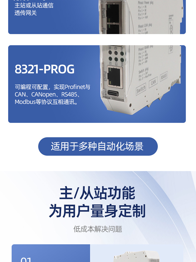 - (1)与分布式总线端子模块相连接,构成一个完整的控制节点; (2)执行数据采集并以Profinet协议进行数据传输。