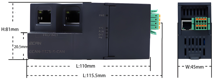 图2.1 GCAN-GT-8321S Profinet网关外观图