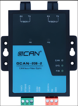 - 沈阳广成科技有限公司GCAN-208-2-F系列模块是集成2路标准光纤接口(单模、多模,SC、ST、FC可选)、1路标准CAN总线接口的工业级CAN总线转光纤转换器。