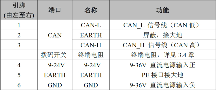 请注意:CAN总线电缆可以使用普通双绞线、屏蔽双绞线。理论最大通信距离主要取决于总线波特率,最大总线长度和波特率关系详见表3.2。若通讯距离超过1Km,应保证线的截面积大于Φ1.0mm2,具体规格应根据距离而定,常规是随距离的加长而适当加大。