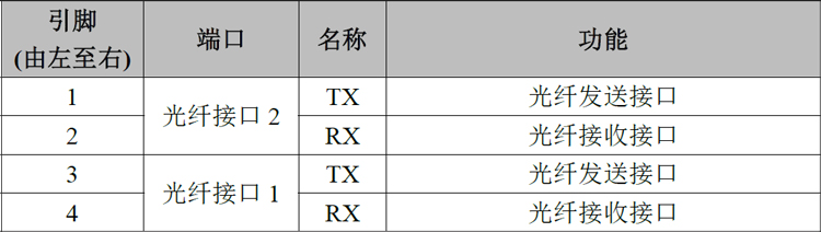 GCAN-208-2-F模块光纤接口位置、接口定义如图2.6、表2.5所示。