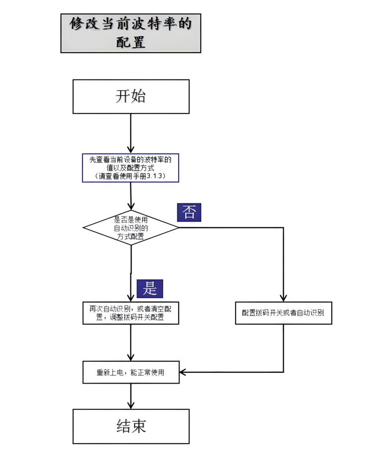 当需要修改当前设备的波特率时,按照如下流程图3.6所示操作即可。