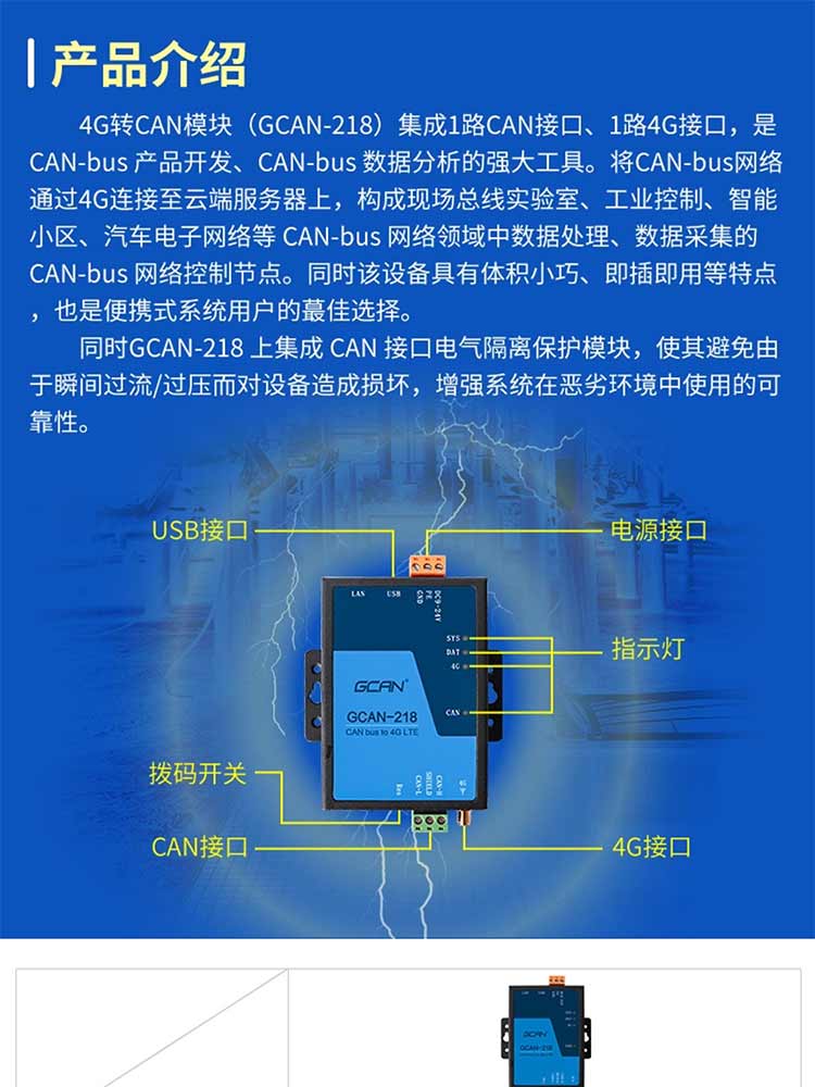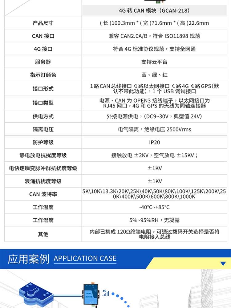 - 沈阳广成科技GCAN-218型CAN转4G模块的设备参数包括: