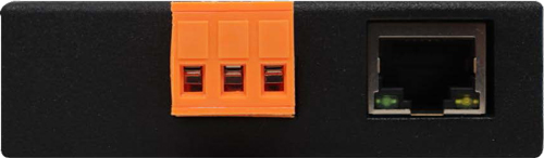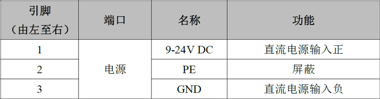 GCAN-212模块(CANET-II)集成一路DC9-24V电源接口、2路标准CAN-bus接口、1路以太网接口。电源接口由一个3 PIN插拔式接线端子(橙色)引出,其接口位置及定义如下图所示。