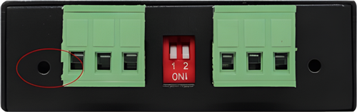 注意:广成科技GCAN-212内部已集成120Ω终端电阻,可通过拨码开关选择是否将电阻接入总线,拨码开关在两个3 Pin端子中间,2号开关控制CAN1对应电阻,1号开关控制CAN2对应电阻,拨到ON的位置即可将电阻启用。