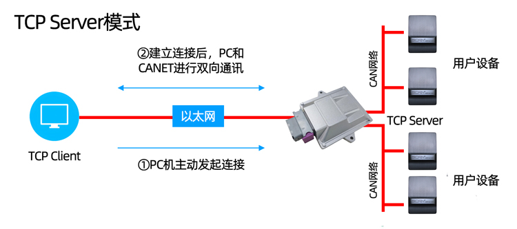 10 00 00 08 01 02 04 01 00 01 00 00 00可设置CAN1的以太网工作模式为TCP Server模式以太网端回复: