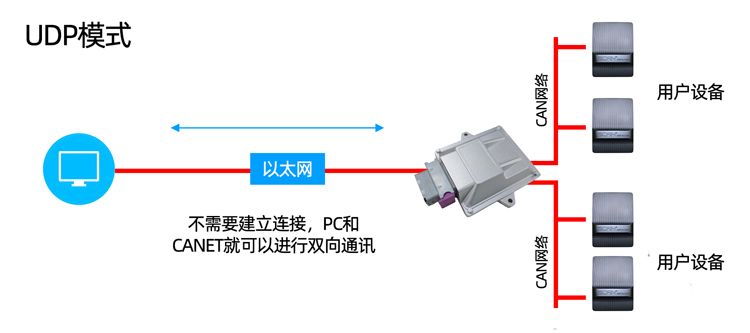 广成科技GCAN-212接口卡的以太网接口符合以太网标准协议规范,设备集成10/100M自适应以太网芯片,支持即插即用。用户可以使用标准以太网网线将工业以太网与GCAN-212连接。GCAN-212支持3种工作模式——TCP Server模式、TCP Client模式、UDP模式。这3种工作模式的介绍详情如下: