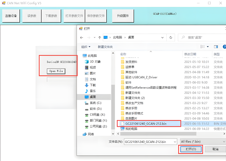 从设备中下载参数上传的配置参数或用户手动配置的参数,可以点击“保存参数文件”将配置信息保存到本地文件。此配置文件也可通过软件“打开参数文件”打开,以便以后使用。