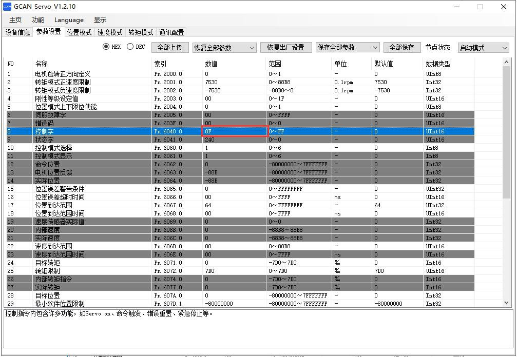 1、设置控制模式为转矩模式:索引Pn 6060.0输入04。