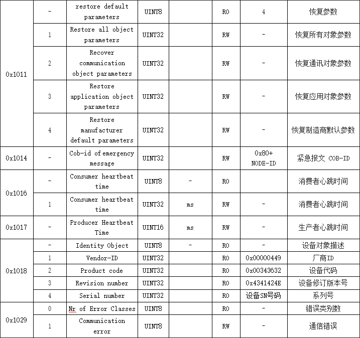 9.2.1对象字典0x1XXX通讯对象详细说明