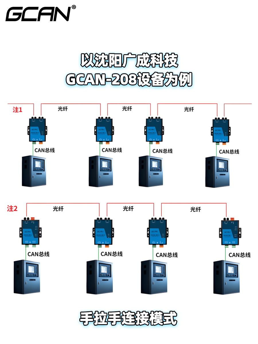 原来广成科技GCAN-208 CAN转光纤有这几种拓扑方式
