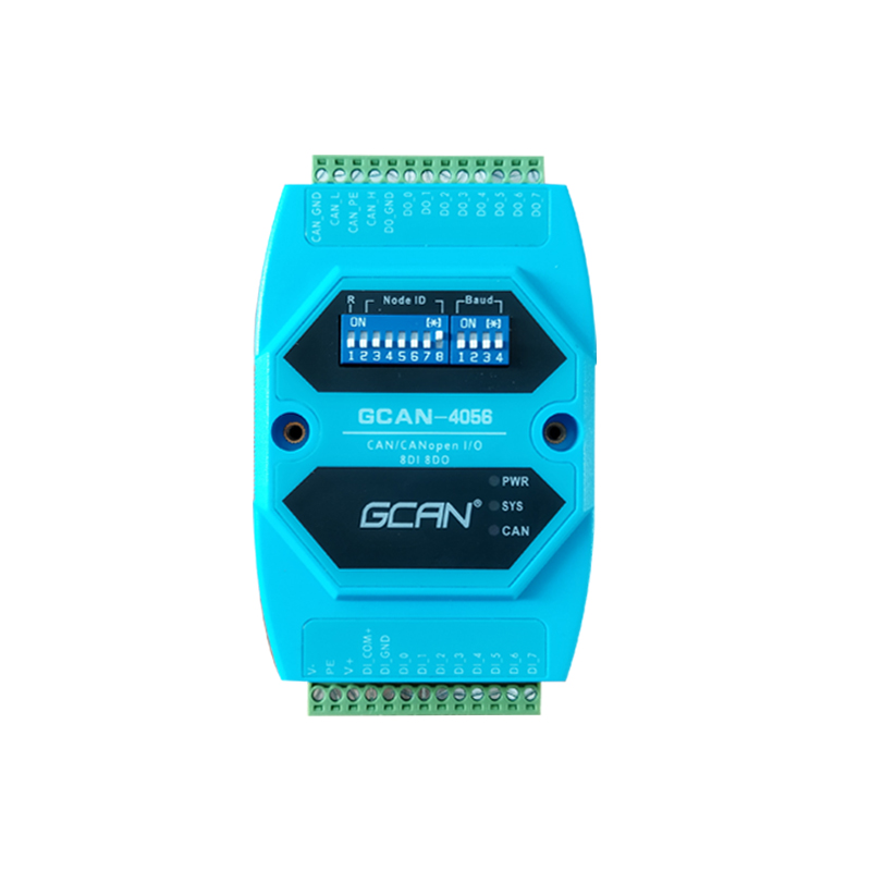 沈阳广成科技GCAN-4056模块是集成1路标准CANopen接口、8路开关量输入通道、8路开关量输出通道的工业级CANopen数字量输入输出模块。采用GCAN-4056模块,用户可用于采集数字量输入信号,并输出数字量信号,控制开关,实现远程开关设备和CANopen网络之间的连接,构成CANopen网络中数据量信号采集、输出的控制节点。GCAN-4056模块是数字量信号采集和输出的关键性工具,同时该模块具有体积小巧、接线便捷等特点。GCAN-4056模块的总线接口集成隔离保护模块,使其避免由于瞬间的过压过流而对模块造成损坏。采用DIN导轨的固定方式,可使其更容易集成到各种控制柜中。